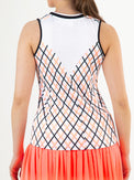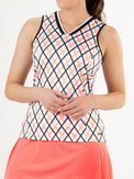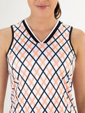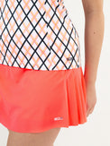 Trendy dames singlet met een vrolijke, kleurige all-over print in ruitpatroon. Aan de rugzijde zit bovenaan een ademende, geperforeerde inzet. Een perfecte singlet voor intensieve activiteiten en warme dagen op de baan.