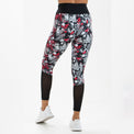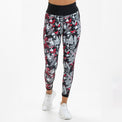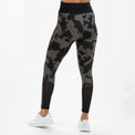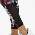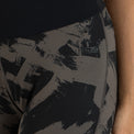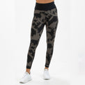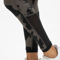 Dames legging in de kleur moonstone grijs met zwarte all-over print. Deze legging van multistretch materiaal heeft aan de achterkant bij de kuiten inzetten van powermesh. Ook heeft hij een elastische cross-over tailleband.