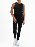 Trendy legging in zwart met een all-over panterprint. Deze legging is gemaakt van zeer elastische 4-way stretch, een materiaal dat je veel bewegingsvrijheid geeft tijdens het sporten. In de tailleband van deze legging zit een zakje voor je sleutels.