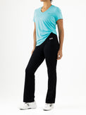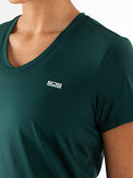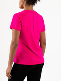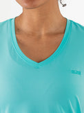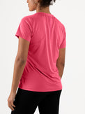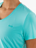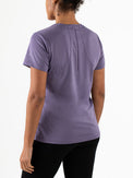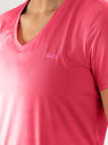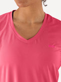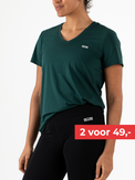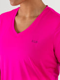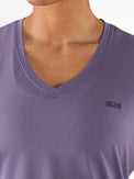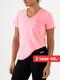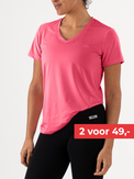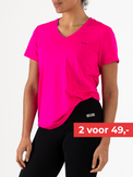 Stijlvol dames v-hals shirt gemaakt van ultralichte jersey in de kleur vibrant lilac. Als opvallende details heeft dit t-shirt platgestikte naden aan de voor- en achterkant en bovenaan de rug een verticale siliconen print met het Sjeng Sports logo.