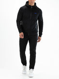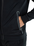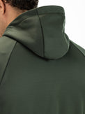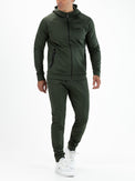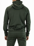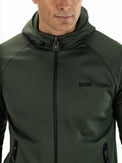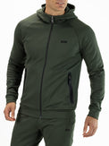 Hooded heren trainingsjack in de kleur camo green. Dit sportieve, comfortabele jack is gemaakt van soepele powerstretch met een geborstelde binnenkant. Het jack heeft gesealde zakken en print op de mouwen. Een heerlijk jack om in te trainen of gewoon lekker in je vrije tijd te dragen.