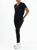 Stijlvol dames v-hals shirt gemaakt van ultralichte jersey in de kleur vibrant lilac. Als opvallende details heeft dit t-shirt platgestikte naden aan de voor- en achterkant en bovenaan de rug een verticale siliconen print met het Sjeng Sports logo.