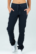Comfortabele dames trainingsbroek van geweven stretch materiaal. De zakken zijn voorzien van ritssluitingen. Prima broek voor een fitness training, maar ook om in je vrije tijd aan te hebben. De Paris Long is 6cm langer dan onze reguliere broek Paris, speciaal voor de vrouw die extra lengte wenst. Bij de enkels zitten ritssluitingen.