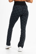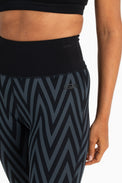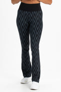 Trendy dames multisportbroek van zwarte multistretch met een zigzag print. Samen met ons t-shirt Noir kun je deze broek combineren tot een stijlvolle, sportieve outfit, die ook zeker niet misstaat wanneer je niet aan het trainen bent.
