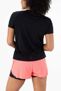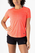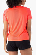 SJS Running t-shirt voor dames. Dit shirt heeft perforatie in het rugpand en reflecterende prints op de schouders. Een lekker luchtig shirt voor bijvoorbeeld je hardlooptraining of wedstrijd.