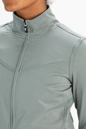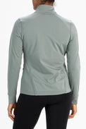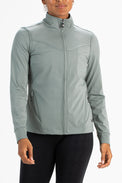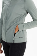 Modieus dames trainingsjack van multistretch materiaal in de kleur oxygen. Opvallende details van dit multisportjack zijn de inzetten van reliǮf seersucker materiaal en de opgestikte tape langs de naden.
